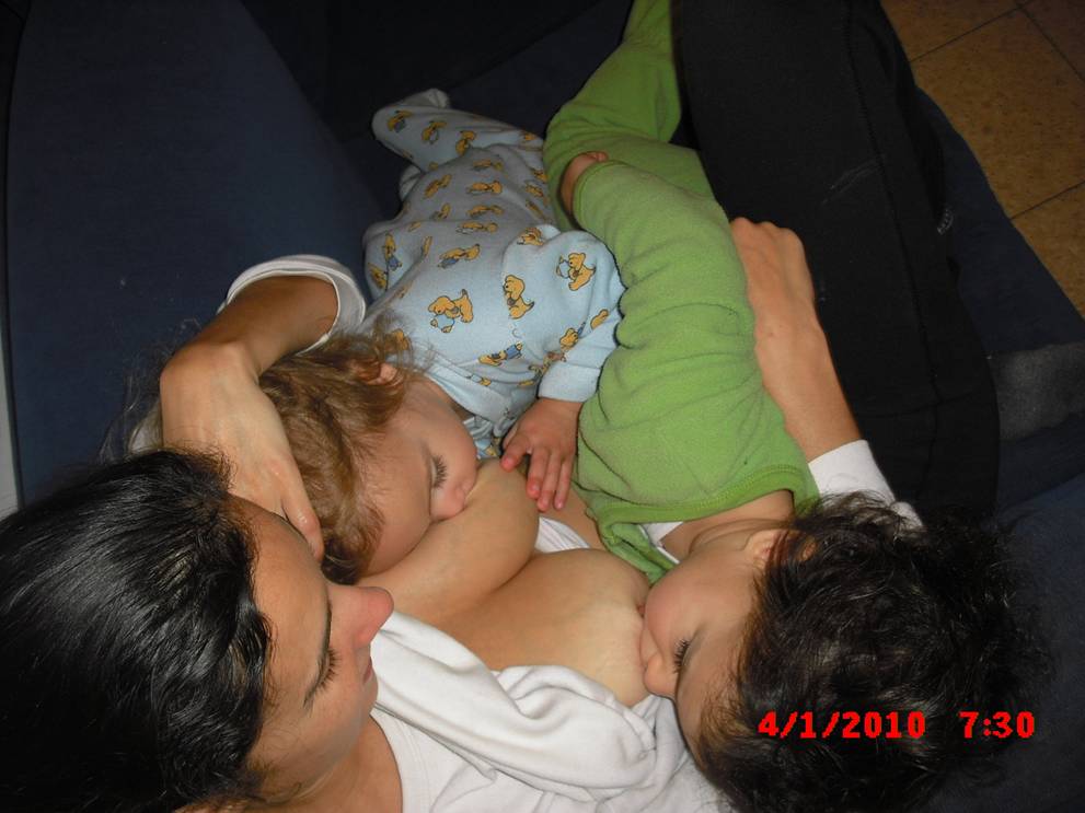 להפתעתי, אימי שהניקה את כל ילדיה, לא תמכה בהנקת תאומים משום שחשבה שזה קשה מדי ושאני צריכה לשמור כוחות גם לילד הגדול.